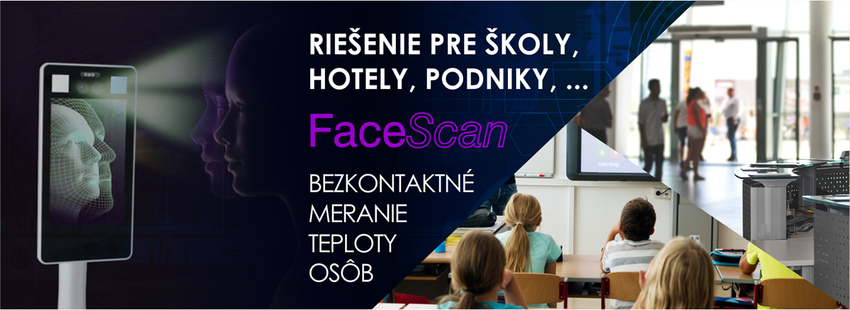 FaceScan je systém určený na bezkontaktné rozpoznávanie tváre osôb a meranie telesnej teploty na základe termometrie v reálnom čase s vysokou presnosťou ± 0,3°C.